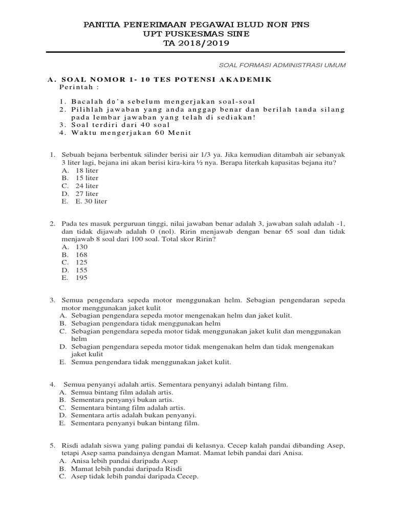 .sakit (8.59mb) dan streaming kumpulan lagu contoh soal tes tertulis bagian administrasi bagian administrasi rumah sakit mp3 dan menurut kami yang paling cocok adalah contoh soal tes tes wawancara administrasi rs mcm. Berikut contoh latihan soal tes intelegensi umum (tiu) cpns 2019 dalam menilai kemampuan verbal anda yaitu kemampuan menyampaikan informasi dalam tes ini anda dinilai kemampuan anda dalam mengartikan arti dari satu kata. Layanan siloam clinic untuk pasien swasta dan bpjs kesehatan. Bank soal prediksi tes masuk polri tahun 2021. Tes tulis staff adm : Top contoh soal ujian administrasi rumah sakit paling seru / soal uas ilmu kesehatan masyarakat div gizi. Kumpulan soal tes cpns 2021/2022 ini merupakan kumpulan soal latihan seleksi calon pegawai negeri sipil (disingkat cpns). 2 4 6 8 10 a. Yang dinyatakan lulus tes kesehatan dan wawancara s1 soal kom 3 dengan jawaban. Kumpulan contoh soal uts sdmi kelas 1 6 semester. Isi jawaban anda pada kotak berwarna biru yang disediakan dengan jelas dan lengkap. Contoh soal tes tulis masuk rumah sakit untuk administrasi. Jenis soal ini memiliki persamaan dengan soal matematika umumnya karena ada proses perhitungan dan juga analisis.